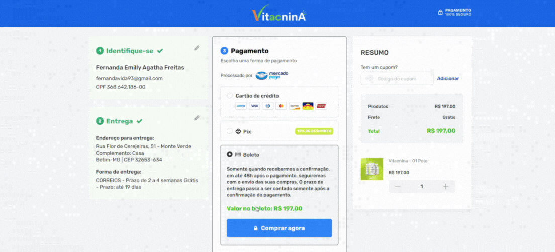 Sim! O PIX é o método de pagamento mais utilizado em nossa loja, com ele você garante 10% de desconto na compra de 2, 3 ou também 4 potes.